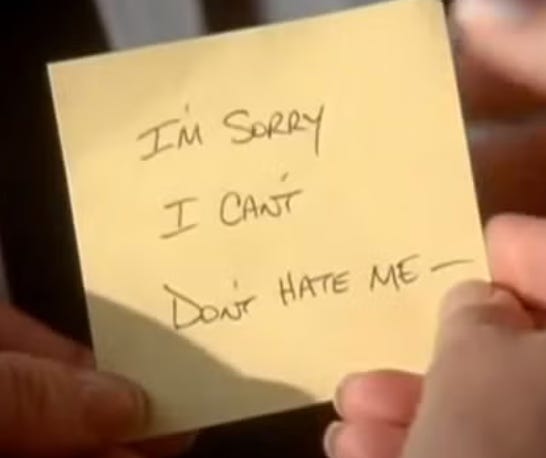 I couldn’t help but wonder…was missing this week’s post the equivalent of breaking up via Post-It?